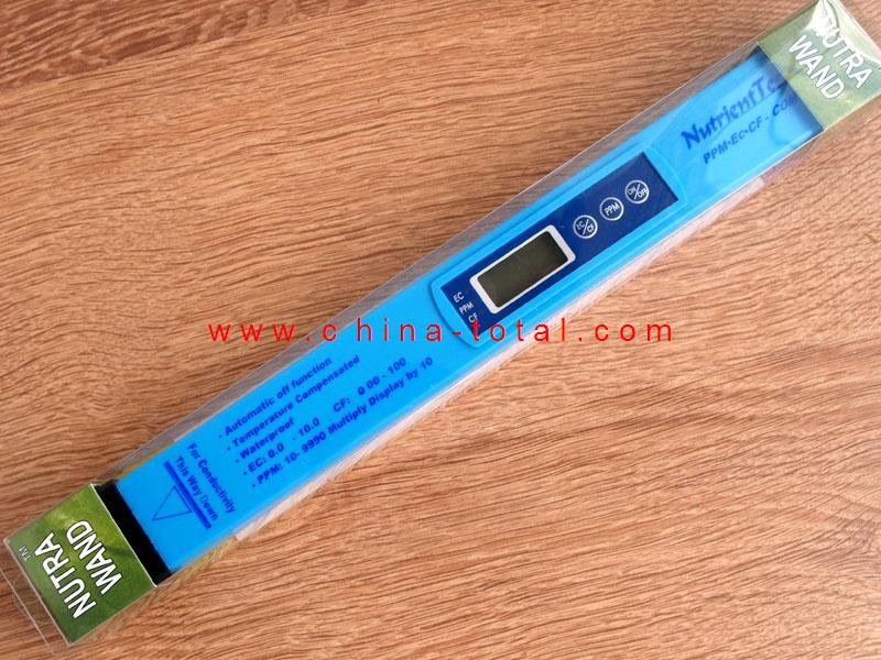 ¡¡ Accurate EC/CF/PPM Meter RS-100B Our latest product model RS-100B EC/CF/PPM meter is a new generation of the "Nutra Wand". It has wider measuring range and higher accuracy, with LCD display instead of analogue display. Digital 3-in-1 Nutra-Wand Nutrient Meter ¡¤ Large Digital LCD display with backlight illumination ¡¤ Wider measuring range and higher accuracy ¡¤ Top-Quality, provided with EC, CF and ppm Scales ¡¤ With graphite electrodes, a lot more reliable and durable than the glass-bulb type electrodes! ¡¤ FREE 9V DC Battery for immediate use This high-quality digital Nutra-Wand is specially designed to determine the TDS/EC/CF values of nutrients for different crops. Using this tester helps maintain an optimal nutrients level for wider range of crops. The Nutra-Wand is a 3-in-1 Nutrient Tester to determine nutrients level of plants in terms of 3 common scales: CF, EC and ppm. Compared with other types of Ntura-Wand, it has a more stable and highly accurate performance in hydroponics, indoor and outdoor gardening. Suitable Applications: ¡¤ Hydroponics ¡¤ Horticulture ¡¤ Floriculture ¡¤ Pools