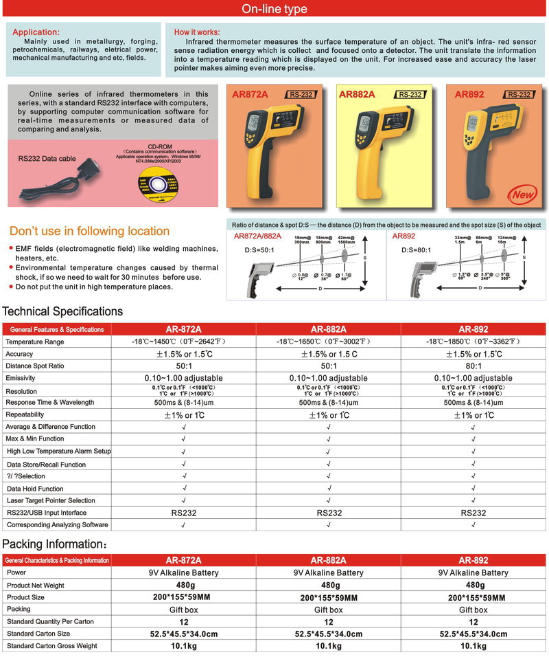 Measuring precision: -25~1,450ºC, +/-(1.5%+1ºC)