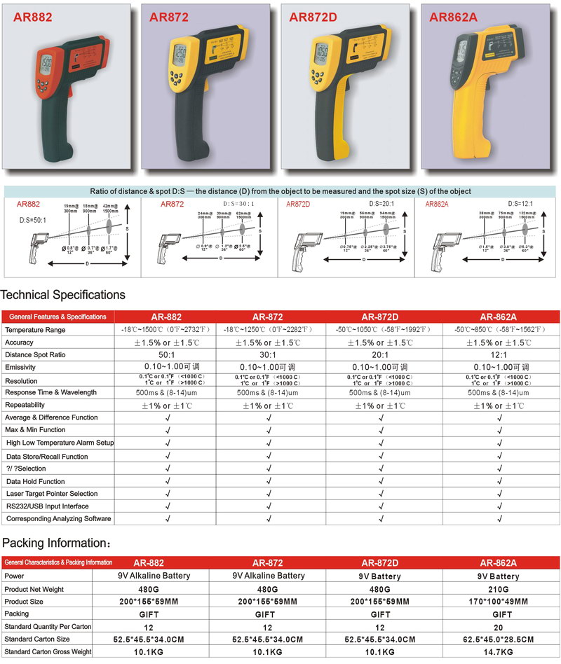 Measuring precision: -25~960ºC, +/-(1.5%+1ºC)