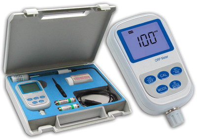 temperature compensation is included. Easy to change electrode. Temperature measurement(¡ãC/¡ãf); IP67 waterproof protection. Auto calibration for 0, 500; High input impedance LCD with two display and bar graph indicator Data hold function. Auto power off. 100 point datalogger with recall. orp electrode: included