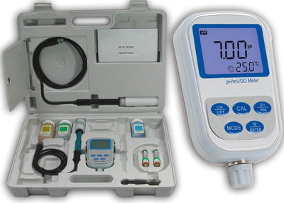 Prominent Features 1. Double parameters meter, with pH and DO electrode, also with calibration solution and special carrying case, easy to use. 2. Built-in microprocessor chip, with the intelligent functions of automatic calibration, automatic temperature compensation, data storage, function setting and automatic self-diagnose, auto power off and low voltage display etc.