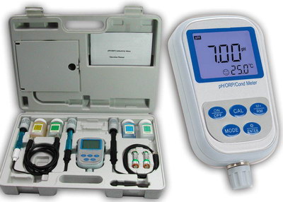 Prominent Features 1. Multi-parameter meter, equipped with pH electrode, ORP electrode, conductivity electrode, equips with calibration solution and special carrying case, easy to use. 2. Built-in microprocessor chip, with the intelligent functions of automatic calibration, automatic temperature compensation, data storage, function setting and self-diagnose information, auto power off and low voltage display etc.