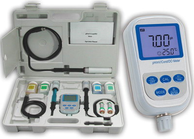 Prominent Features 1. Multi-parameter meter, equipped with pH electrode, ORP Electrode, conductivity electrode, temperature electrode, DO electrode, when connect the electrode to the meter, the meter can automatically know the electrode, easy to use. 2. Built-in microprocessor chip.. Its features up to automatic calibration, automatic temperature compensation, data storage, auto power off, low voltage indication, functions setting and automatic self-diagnose etc.